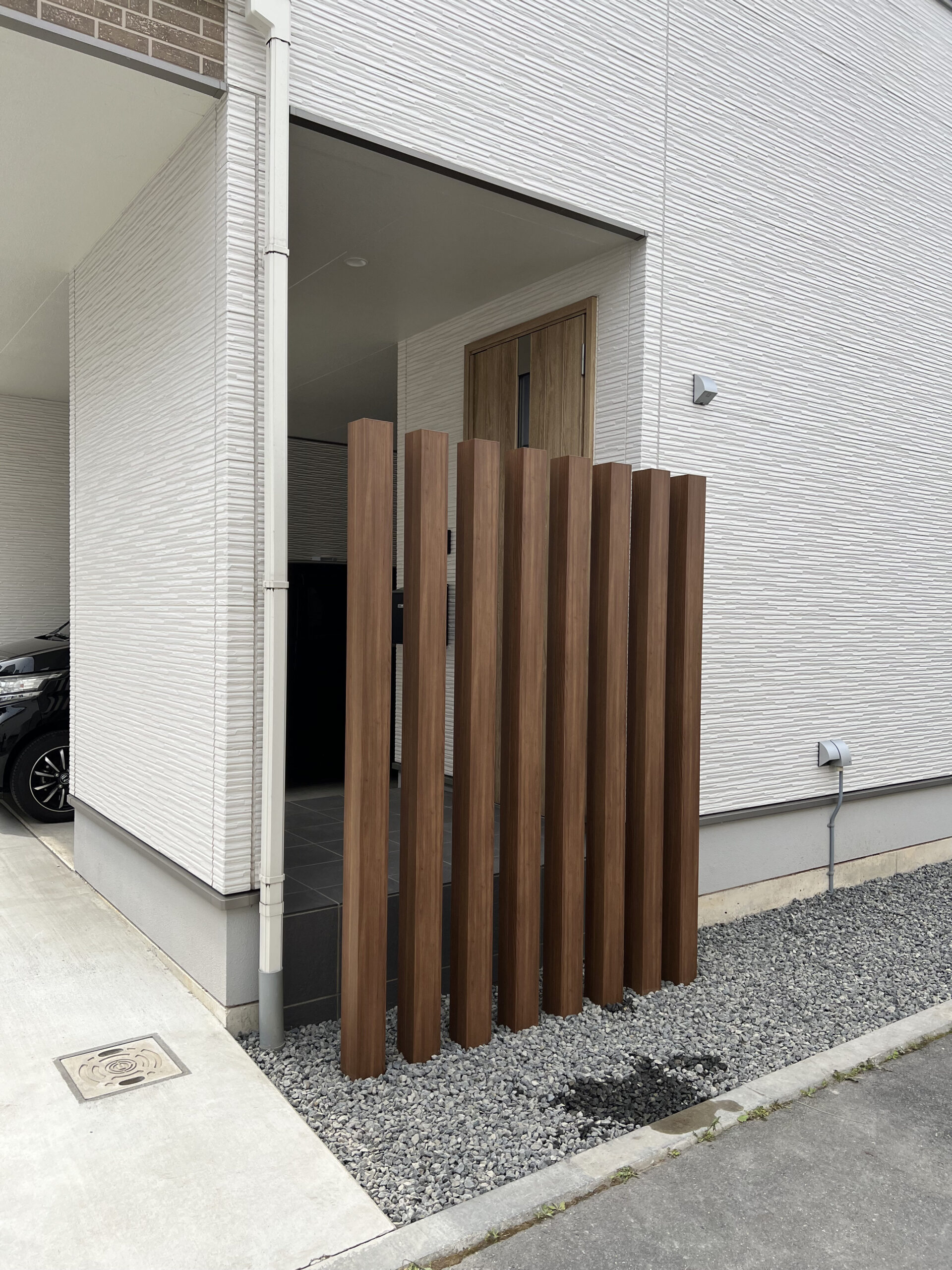 2025年6月30日 / 最終更新日 : 2025年11月17日 wp_lti_admin 実績 H.O様 外構(目隠し)工事 家が道路に面しており、通行人から玄関が直接見えてしまうため、人目が気になるというご相談をいただきました。 玄関まわりの視線をやわらかく遮りつつ、外観の印象も損なわないような“おしゃれな目隠し”をご希望とのことで、今回の施工をご依頼いただきました。 H.O様ありがとうございました。