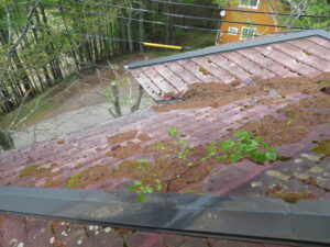 さらに、家の周囲にある立木や枝葉が屋根にかかると、落ち葉が溜まりやすく傷みの原因になります。可能な範囲で枝を剪定し、家に覆いかぶさらないよう整えておくことをおすすめします。
